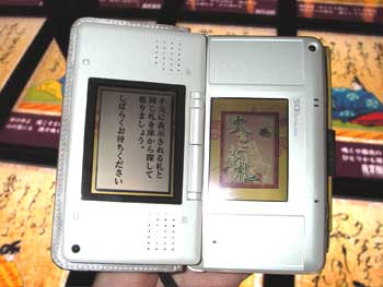 DSに映された句と、足元に映し出されるたくさんの巨大かるた映像の中から同じ句を探しだし、同じ句の映像のところでタッチペンでツンすると札が取れるという体感かるたゲーム。